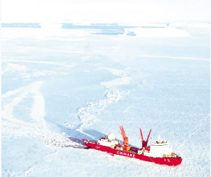 “雪龍”號(hào)是中國(guó)最大的極地考察船,也是中國(guó)唯一能在極地破冰前行的船只?!把垺贝秃芤?.5節(jié)航速連續(xù)沖破1.2米厚的冰層(含0.2米雪)。簡(jiǎn)單來說,“雪龍”號(hào)船底有許多密封艙,破冰時(shí)先把后部的密封艙用幾千噸的海水灌滿;這樣船頭自然翹起,壓騎至冰面之上;然后再把前部的密封艙灌滿海水,后部的海水排出,利用船體前部的巨大壓強(qiáng),把堅(jiān)冰壓裂破開。