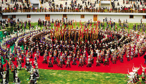貴州省黔東南苗族侗族自治州雷山縣作為中國苗族歷史上大遷徙的集結(jié)地和中國苗族文化中心,以厚重獨(dú)特的文化,包括苗年在內(nèi)的11項(xiàng)文化遺產(chǎn)登上了中國非物質(zhì)文化遺產(chǎn)的殿堂。苗年是苗族一年中最重要的祭祀傳統(tǒng)節(jié)日,是苗家人的一大盛事,每年都有來自全國乃至全世界的游客到雷山參加苗年活動。圖為紅火熱鬧的苗年歡慶場面。