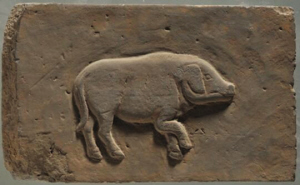 長(zhǎng)30厘米,寬18.5厘米,厚5厘米,呈長(zhǎng)方形。畫(huà)面中央為一只側(cè)身的小豬。小豬形象逼真,一只前踢抬起,體態(tài)肥碩,造型可愛(ài),刻畫(huà)精細(xì)。