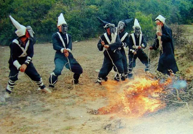 “撮泰吉”是彝語的稱謂,屬于彝族的一種古戲,譯意為“變?nèi)说膽颉保且妥逯匾脑甲诮绦叛龊兔褡屣L(fēng)情習(xí)俗。每當(dāng)春節(jié)期間正月初三至十五和六月二十四至二十六的火把節(jié)期間,貴州最高峰韭菜坪山脈一帶的赫章、威寧彝族同胞就會演出《撮泰吉》,舉行“掃火星”的驅(qū)邪納吉活動儀式,祈求火災(zāi)、瘟疫遠離人們,讓平安幸福永遠伴隨彝家。演出的內(nèi)容有祭祀祖先、民族遷徙、拓荒耕種、買賣牲畜、交配繁殖后代等,最后才逐戶為全寨掃除火星。