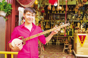 今年 22歲的玉買(mǎi)爾江·玉山。2005年冬天我見(jiàn)到他的時(shí)候,他邊上學(xué)邊在樂(lè)器作坊當(dāng)小學(xué)徒,現(xiàn)在他已經(jīng)是一家商鋪的老板了。他既能制作樂(lè)器,又是出色的音樂(lè)人。隨著游客量不斷增長(zhǎng),他今年收入頗豐。