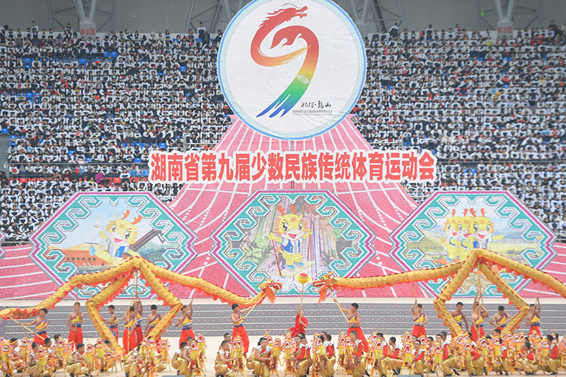 金風送爽,丹桂飄香。10月16日至20日,湖南省第九屆少數(shù)民族傳統(tǒng)體育運動會在龍山縣舉行。本屆運動會以“龍山緣·民族情·中國夢”為主題,由省民宗委、省體育局、湘西州人民政府主辦,龍山縣人民政府承辦,共有來自湖南省14個市州和17個民族縣市區(qū)組成的31個代表團2631人參加,是湖南省歷屆少數(shù)民族傳統(tǒng)體育運動會規(guī)模最大、規(guī)格最高、參賽人數(shù)最多的一次。運動會期間,來自土家、苗、瑤、侗、白、維吾爾、壯、回、漢等22個民族的1991名運動健兒角逐高腳、秋千、板鞋競速、射弩、陀螺、蹴球、押加、毽球以及民族健身操9大項60個小項的競賽項目以及55個表演項目。