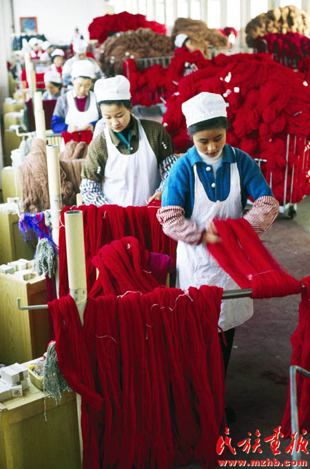 20世紀90年代初期,一些經(jīng)濟學(xué)家把戰(zhàn)略眼光投向資源豐厚的西部地區(qū),以促進中西部省區(qū)經(jīng)濟協(xié)作為目的的隴海蘭新經(jīng)濟帶悄然成型,并輻射至西亞和歐洲。圖為跨入全國800家最大工業(yè)企業(yè)行列的甘肅省天水市甘肅絨線廠?!睹褡瀹媹蟆?994年第4期