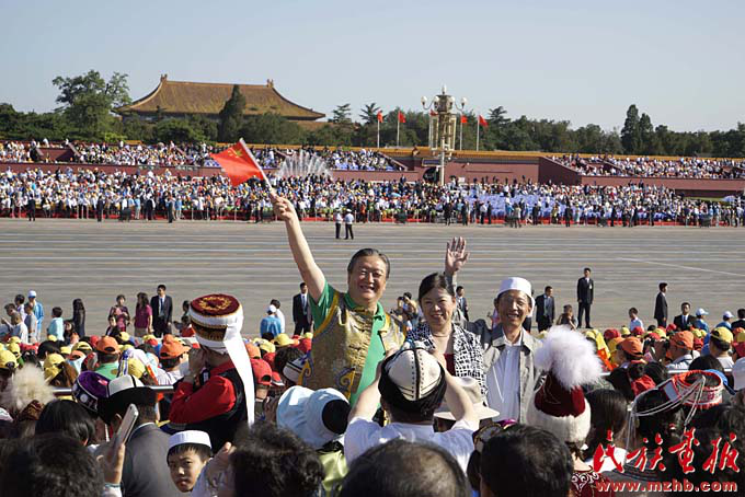 新中國成立以來,黨和國家始終堅持把馬克思主義民族理論同中國民族問題具體實際相結(jié)合,始終堅持把民族工作作為一項重大工作來抓,團結(jié)帶領(lǐng)全國各族人民共同團結(jié)奮斗,共同繁榮發(fā)展,開創(chuàng)了中國特色解決民族問題的正確道路,取得了舉世矚目的成就,積累了彌足珍貴的成功經(jīng)驗。2009年10月1日,在北京天安門廣場,20萬軍民以盛大的閱兵儀式和群眾游行歡慶新中國60華誕,圖為各民族學(xué)生參加“團結(jié)奮進”方陣群眾游行?!睹褡瀹媹蟆?009年第10期