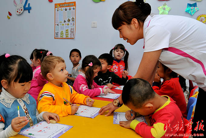 民族團結(jié)是國家統(tǒng)一、繁榮昌盛的前提和保證,各民族“共同團結(jié)奮斗,共同繁榮發(fā)展”是我國民族工作的主題。全國各地扎實開展民族團結(jié)進步創(chuàng)建工作,平等團結(jié)互助和諧的社會主義民族關(guān)系進一步鞏固和發(fā)展。2011年,空軍駐新疆和田某指揮所首次投資80萬元,開辦了和田八一愛民雙語幼兒園,讓30個家庭的孩子進入雙語班成為首批“藍天春蕾兒童”。圖為維吾爾族戰(zhàn)士艾力夏提和該園兒童一起玩老鷹捉小雞游戲?!睹褡瀹媹蟆?011年第11期