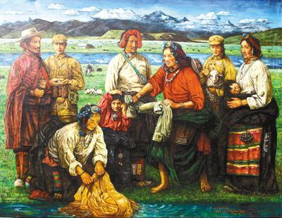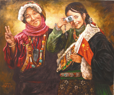 “以前畫畫時,對自己的最高要求就是畫得要逼真,把油畫畫得像一幅放大了的照片,而現(xiàn)在關(guān)注的是如何畫出能體現(xiàn)當代的畫面。西藏的美是無窮無盡的,我就想用繪畫的方式窮盡一生去追求,展現(xiàn)大美西藏?!比缃竦乃髀?,淡去了初出茅廬時一味追求畫面質(zhì)感的匠氣,多了些許內(nèi)心對西藏這片熱土深層次的思考。他筆下的西藏是一片充滿生機的土地,濃墨重彩之間,既有對傳統(tǒng)和過往年華的回望和懷念,又在仿若不經(jīng)意間透過一個眼神、一抹色彩、一個小物件盡情詮釋活力和希望。