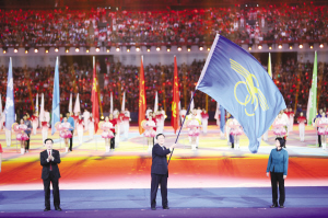 中共中央書記處書記、中央統(tǒng)戰(zhàn)部部長(zhǎng)尤權(quán)宣布運(yùn)動(dòng)會(huì)閉幕。