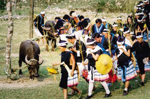 白褲瑤的喪葬習(xí)俗十分獨特,整個葬禮悲壯、肅穆,氣氛凝重莊嚴。參加葬禮的親友依次排隊順時針繞牛一圈,緬懷逝去的親人。2007年10月拍攝。