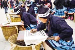 白褲瑤服飾制作需要幾個月的時間,經(jīng)過紡紗、織布、描圖、蠟染、刺繡、縫制等30多道工序,其中許多工序都受季節(jié)和天氣變化的影響。