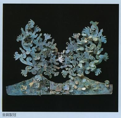 藤之木古墳出土的鎏金冠飾,在我國遼寧北燕墓地和高句麗墓均有類似文物發(fā)現,是鮮卑等北方少數民族貴族流行的冠飾,稱為鳥型冠飾。