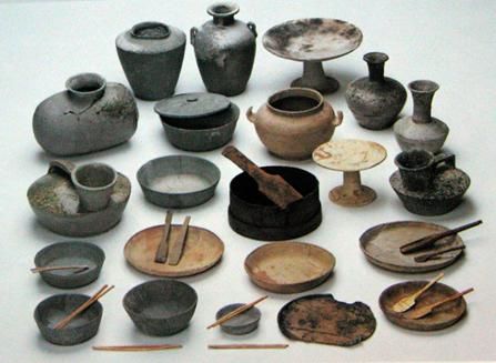 彌生時代的名稱,源自1884年東京市本鄉(xiāng)彌生町“彌生陶器”的發(fā)現。彌生陶器與繩紋陶器截然不同,為素面,灰色。日本人認為彌生陶器是“渡來人”制造的?!岸蓙砣恕笔侵袊箨懲ㄟ^朝鮮半島而來,他們帶來了陶器的制作技術。彌生陶器為深釜器,以甕形器、缽形器、高腳杯(豆形器)為主(圖五)。