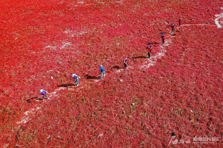 10月10日,農(nóng)民在晾曬辣椒。眼下,哈密國家農(nóng)業(yè)科技園區(qū)千余畝線辣椒喜獲豐收。今年,哈密國家農(nóng)業(yè)科技園區(qū)以政府引導、合作社牽頭的模式調(diào)整產(chǎn)業(yè)結(jié)構,引種用水省、效益高的訂單辣椒,助力農(nóng)民增收致富。李華攝