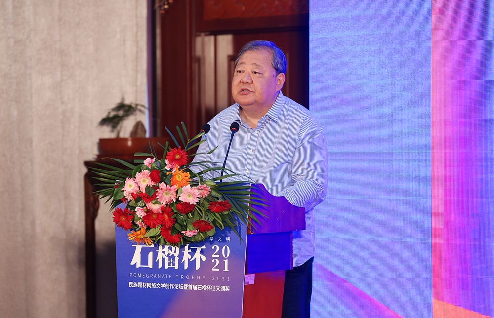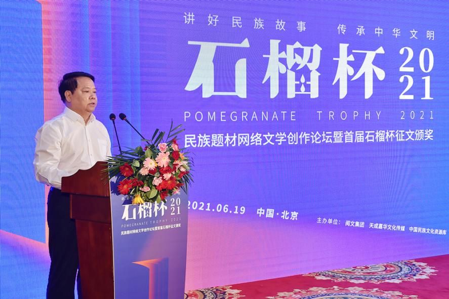 6月19日,民族題材網(wǎng)絡(luò)文學(xué)創(chuàng)作論壇暨首屆石榴杯征文大賽頒獎(jiǎng)典禮在京舉行。作為國(guó)家民委主辦的“中華民族全家?!毕盗谢顒?dòng)之一,首屆石榴杯征文大賽得到了國(guó)家民委文化宣傳司和中國(guó)少數(shù)民族文化藝術(shù)促進(jìn)會(huì)的指導(dǎo)與支持,由閱文集團(tuán)聯(lián)合天成嘉華文化傳媒、中國(guó)民族文化資源庫、中國(guó)民族文化資源網(wǎng)共同舉辦。本屆大賽以“講好民族故事 ,傳承中華文明”為主題,涌現(xiàn)出眾多弘揚(yáng)民族精神、表達(dá)文化自信、傳播正能量的作品。經(jīng)過專家推薦及嚴(yán)格評(píng)審,《草原有座蒙古包》、《走西口之天山行》、《彩云微光》等三部作品獲“最具民族風(fēng)采獎(jiǎng)”,《神藏》、《歡想世界》、《爛柯棋緣》、《時(shí)光和你都很美》、《恰似寒光遇驕陽》、《黎明醫(yī)生》、《暖君》、《驚雷》、《大訟師》、《消防英雄》等十部作品獲“優(yōu)秀作品獎(jiǎng)”。所有獲獎(jiǎng)作品都將收錄入中國(guó)民族文化資源庫。中國(guó)作家協(xié)會(huì)副主席、書記處書記吉狄馬加表示,本屆石榴杯大賽是在黨和國(guó)家長(zhǎng)期以來堅(jiān)持的對(duì)民族文化、少數(shù)民族作家創(chuàng)作和民族題材創(chuàng)作的大力扶持下,依托網(wǎng)絡(luò)文學(xué)平臺(tái),將文學(xué)作品與影視作品改編、游戲、動(dòng)漫產(chǎn)品制作結(jié)合起來,探索的一條發(fā)展民族文化的新路,具有開創(chuàng)意義。
