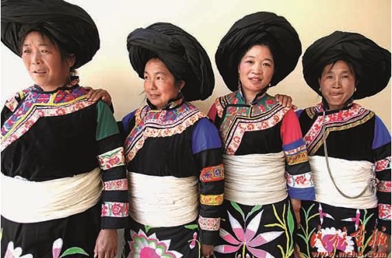 青海土族、四川羌族、云南彝族偏愛紅色服飾。在云南省楚雄彝族自治州永仁縣的彝族賽裝節(jié)上,婦女們身著紅色刺繡服裝,匯聚成一片紅色的“海洋”;涼山彝族以紅黃黑三色為主色,服飾、漆器、室內(nèi)外裝飾多為這3種顏色;漢藏語系彝語支的彝族、納西族、傈僳族、阿昌族等民族崇尚黑色,在他們的文化中,山水、地名、人名等都能體現(xiàn)尚黑的心理特點;白族男女則崇尚白色,在其風俗中,白色最為尊貴。