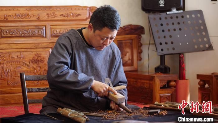 李曉盼在手工制作嗩吶?!黔?攝