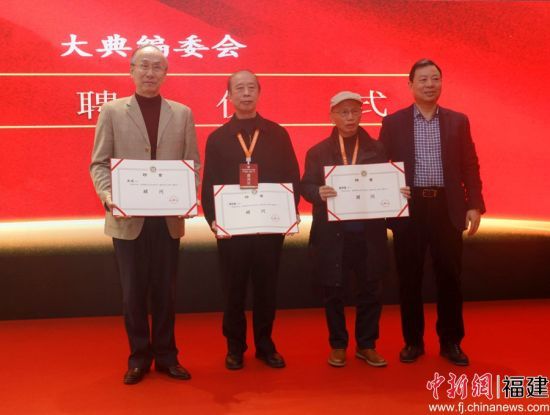 在當(dāng)天的開幕式活動上,還舉行了表彰和敦聘儀式。劉孫建代表文經(jīng)書院和大典編委會,向經(jīng)抄團(tuán)隊(duì)書家代表沈亮光、陳若航頒發(fā)榮譽(yù)證書,同時禮聘董克儉、劉蕻擔(dān)任副院長,岳峰、楊志英和福建省文聯(lián)原黨組書記陳濟(jì)謀等擔(dān)任大典編委會顧問。(完)