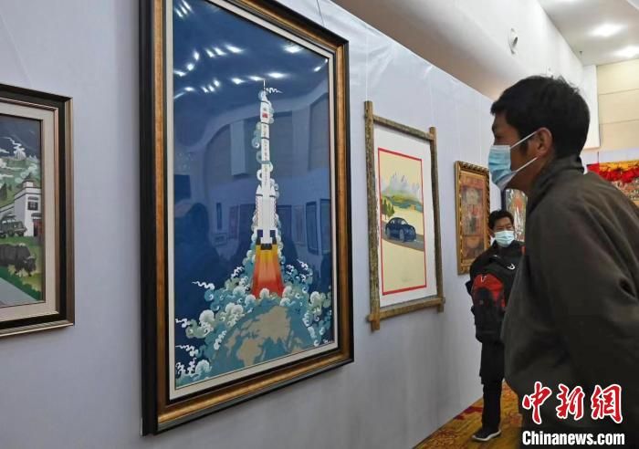 邊巴是作品《一飛沖天》的作者,這位畫師從1979年從事唐卡繪畫至今。他說,該作品以神舟十三號為主題,描繪了飛船沖出地球奔向星辰大海的瞬間。采用勉唐派唐卡繪畫語言和傳統(tǒng)礦植物顏料。同時融合了漢藏審美視角,立足于中國放眼世界的人類命運(yùn)共同體胸懷,嘗試新時代新唐卡新融合的藝術(shù)表達(dá)。