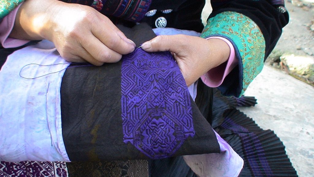 服裝的挑花刺繡均是依照布料的經緯戳針,在繡法上多有變化,如平繡、數紗繡、織繡等,其紋樣層層疊套,圖案工整對稱,其繡技與織技完美統一,巧奪天工,具有很強的立體感。體現了苗族獨特的正挑反針挑花、刺繡、織繡等精湛工藝。
