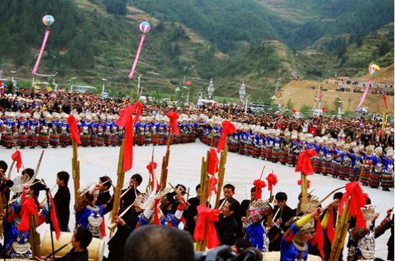 貴州雷山苗族至今仍保留“以十月為歲首”的紀年法。每年的農(nóng)歷十月,雷山苗寨一派歡騰,開展極富特色的辭舊迎新活動。