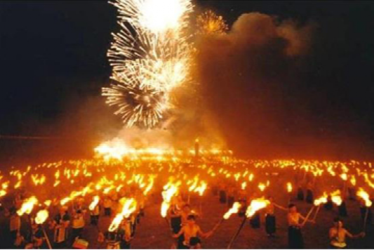 關于火把節(jié)的傳說較多,有紀念漢代酋長曼阿南之妻阿南夫人殉夫之事;有三國時群眾歡送諸葛亮南征得勝回成都之事;有南詔王皮羅閣“火燒松明樓”,柏節(jié)夫人殉節(jié)之事;還有紀念五谷之神“達撥”,祈求五谷豐登,六畜興旺之意。