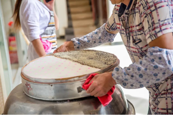 作為小吃的代表,鶴慶米糕的軟糯香甜,絕對吊足胃口。精選上等白米泡軟磨粉,加上橙皮、紅糖等輔料,細細地篩入甑子,繚繞的蒸汽中,香甜的氣味似乎能從鼻尖鉆進心里。輕輕咬上一口,松軟的口感如同在舌尖上融化,清甜的味道直接沁入心頭,一塊米糕,藏著多少鶴慶人的美好回憶。