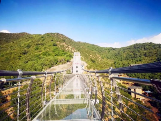 沿著木棧道,一路緩緩而行。滿山遍野的綠撲面而來,自然生長的白樺林,依山而建的鱗次櫛比的小木屋,78米高212米長的玻璃棧道,2萬平方米的水上樂園……人與景相依相融,林胡古塞處處充滿著現(xiàn)代與古樸結合的畫面。