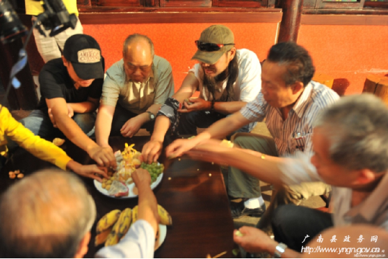 西行音樂(lè)公路之旅在享用土司盛宴——“三滴水”后,劇組被壯民族創(chuàng)造的具有深厚民族文化貫穿其中的民族飲食文化所折服,被壯民族熱情好客的情緒所感染。西行音樂(lè)公路之旅執(zhí)行導(dǎo)演劉暢說(shuō),北京有滿(mǎn)漢全席,想不到在廣南這個(gè)地方也有壯族自己的“滿(mǎn)漢全席”,他說(shuō),我和我的小朋友們都驚呆了!