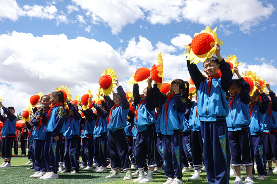 土默特左旗民族中學(xué)學(xué)生在運(yùn)動(dòng)會(huì)上表演。(玉榮 供圖)