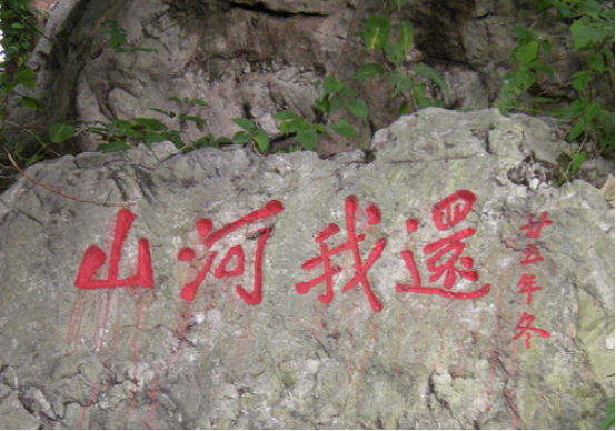 冠山,位于貴州龍里冠山盆地(縣城)東隅,巖山形似金鐘撲地,古木參天,蔥郁蒼翠。明永樂七年(1409)始建的道教活動場所掩蔽其中,可謂“山不在高有仙則名”。在歷史的長河中,雖然道教一去不復(fù)返,但其紫虛觀主體建筑保存尚好,現(xiàn)列為省級文物保護(hù)單位,由主體建筑紫虛閣、左右?guī)俊⑶暗?、山門、文昌祠組成二進(jìn)院式古建筑群。主體建筑為木構(gòu)穿斗式三重檐六角攢尖筒瓦頂,1989年遷入的文昌祠,為木構(gòu)抬梁式歇山青瓦頂,帶吻正脊,戧脊翹角卷草,石質(zhì)柱礎(chǔ)浮雕仙草、竹、梅、鹿等圖案。西南兩面有1936年題刻的“還我河山”、“巨靈一孹”等七方摩崖石刻。建筑物的形制、布局給人一種古樸、滄桑之感。登閣騁目,遠(yuǎn)山峻嶺和鱗次櫛比的樓房盡收眼底,讓人流連忘返。