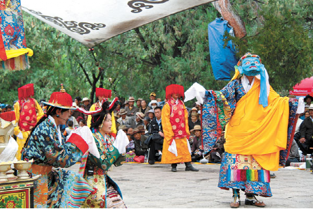 覺(jué)木隆藏戲是藍(lán)面具藏戲劇種中最重要的一個(gè)流派。它是所有藏戲班子和流派中藝術(shù)方面發(fā)展最為完備、豐富,影響最大、流傳也最廣的一種。覺(jué)木隆藏戲班是舊西藏唯一帶有專業(yè)性的劇團(tuán),歸西藏地方政府“孜恰列空”和功德林寺共同管理,但無(wú)薪俸,除參加雪頓節(jié)會(huì)演可得賞銀和食物外,其他時(shí)間則到西藏各地以賣藝為生。他們唯一的權(quán)力是可以任意挑選演員。他們持有西藏地方政府發(fā)的一紙文書,聲明他們所到之處,在業(yè)余藏戲班子中如發(fā)現(xiàn)優(yōu)秀的苗子或尖子,可以馬上挑走,該業(yè)余班子不得阻攔。這個(gè)戲班最初是拉薩西郊堆龍德慶區(qū)覺(jué)木隆村的民間戲班,故稱覺(jué)木隆藏戲班。