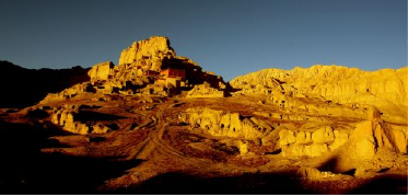 黃昏時(shí)分,我們進(jìn)入阿里札達(dá)縣,象泉河谷的臺(tái)地上,一座頹敗的天降塔驟然闖入視線,讓人猝不及防地一步便踏入歷史中。在雪域高原的梵天佛地里,佛塔觸目皆是——天降塔、菩提塔、噶當(dāng)塔等。踏上阿里的土地,你勢(shì)必遭遇一個(gè)又一個(gè)的廢墟,滿目蒼涼又讓人心生崇敬。那個(gè)曾經(jīng)重啟青藏高原信仰時(shí)代的偉大王朝,早已埋沒在時(shí)間的塵埃里,只留下這些日漸風(fēng)化的紀(jì)念碑,講述著它曾經(jīng)的奇跡和宿命。