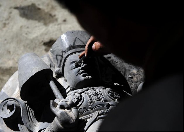 伴隨著收音機傳出的旋律,西藏自治區(qū)級黑玉石雕刻技藝非物質(zhì)文化遺產(chǎn)傳承人土登加措和他的徒弟們開始了又一天的黑玉石佛像雕刻工作。黑玉石產(chǎn)生于海拔4500米以上的石山上,是高原特有的一種石材。據(jù)古書記載,西藏第一代藏王聶赤贊普曾將天降的經(jīng)書、塔模等佛教圣物封存于洞中,并以黑玉石雕刻佛塔做蓋,于是便有了西藏歷史上有記載的第一件黑玉石雕刻作品。作為這門技藝的第五代傳人,土登加措延續(xù)著家族的技藝,一直傳承著這門古老的技藝。西藏黑玉石雕刻技藝在2012年入選第四批西藏自治區(qū)級非物質(zhì)文化遺產(chǎn)名錄,土登加措如今已有近30名弟子,古老的黑玉石雕刻技藝正在慢慢走向世界。新華社記者 晉美多吉 攝