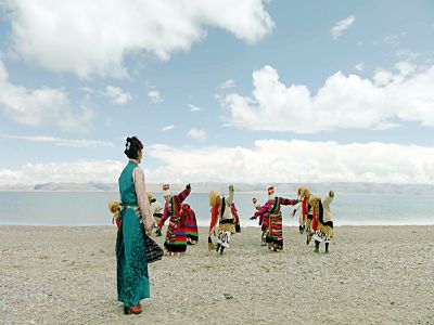 藝術(shù)團在湖邊練習(xí)磁石彈舞