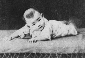 小兒出月,妻親手縫制貓頭帽一頂為之戴上,帽上有都爾。另制一無頂箍箍帽,上鑲桃子與花。是遵禮俗,唯祈有福。