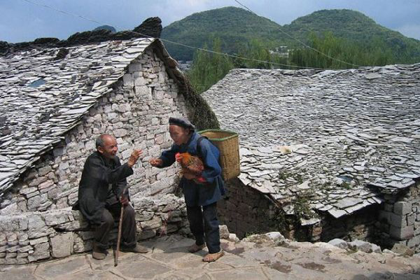 布依族村寨以貴州為多。在貴州的鎮(zhèn)寧、安順等布依族地區(qū)盛產優(yōu)質石料,當?shù)夭家雷逡虻刂埔耍偷厝〔模檬闲拊斐鲆淮贝鳖H具民族特色的石板房。