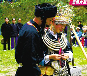 地處貴州省錦屏、天柱、劍河三縣交界處的九寨北部侗族社區(qū)山奇水秀,這里的婚戀習(xí)俗也獨(dú)具特色。當(dāng)?shù)啬信嗄?,往往都?huì)經(jīng)歷一段神奇、浪漫的談情說愛過程。他們把談戀愛稱作“玩山”,把約會(huì)地點(diǎn)稱為“花園”,而相戀過程一般經(jīng)過邀約、初會(huì)、架橋、念想、成雙或分散等階段。