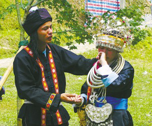 幾個(gè)月后,女方會(huì)用籃子提來(lái)可口的食物,與男方共享,并開始送女紅等信物。很自然地,玩伴心中就涌起“人圖人”、“人謀人”的念頭,玩山隨之進(jìn)入最激動(dòng)人心的成雙階段。