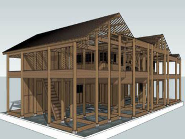 傣族人民多居住在平壩地區(qū),常年無雪,雨量充沛,年平均溫度達21℃,沒有四季的區(qū)分,干欄式建筑是很合適這種環(huán)境。竹樓用各種竹料(或木料)穿斗在一起,互相牽扯,結(jié)構(gòu)極為牢固。