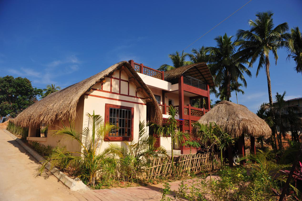 黎族民居有“干欄式”住房、船形屋、仿漢式金字屋和磚瓦房等幾種形式。除磚瓦房外,其他幾種住宅的建筑材料均采用本地區(qū)的各種硬木、堅竹、韌藤、野麻和茅草,均屬于海島最佳的隔熱材料。房屋的柱子、直梁、檁條和椽子互相牽連,成為一個整體,可以抵抗狂風(fēng)暴雨,非常結(jié)實?!案蓹谑健贝挝菔抢枳迦嗣窆爬系淖≌???筛鶕?jù)離地高低分為高欄屋和低欄屋。“船形屋”平面結(jié)構(gòu)呈縱向延伸,屋頂與檐墻合一,狀如船篷。屋前有一大門廊,既可堆放雜物,做家務(wù),又可以休息。整個房屋建筑無間隔、不開窗,房門開在山墻處。室內(nèi)設(shè)右三足灶。仿漢式金字屋主要分布在臨近漢區(qū)或黎漢雜居地區(qū),是黎族人吸取漢人住宅的優(yōu)點改造而成的。呈橫向長方形,前后植墻升高,在檐墻處開門、窗、檐前廊子寬大。有的地區(qū)在金子屋的側(cè)面山墻或后檐墻開正門。