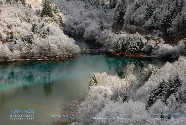 九寨溝四周群山聳峙,有雪峰數(shù)十座,高插云霄,終年白雪皚皚。河谷地帶奇水薈萃,其間有成梯形分布的大小湖泊114個(gè),瀑布群17個(gè),鈣華灘流5處,泉水47眼,湍流11段,以1870米的海撥高差,在12 座雪峰之間穿林跨谷,珠連玉接,呈Y字型串珠,逶迤近60公里,形成了中國(guó)唯一、世界罕見(jiàn)的以高山湖泊群和瀑布群以及鈣華灘流為主體的風(fēng)景名勝區(qū)。湖泊小者數(shù)平方米,最大的長(zhǎng)海長(zhǎng)達(dá)7公里。湖水終年碧藍(lán)澄澈,色彩斑讕,在陽(yáng)光照射下,呈現(xiàn)出藍(lán)、黃、橙、綠等多種色彩,絢麗奪目。天氣晴朗時(shí),藍(lán)天、白云、雪山、森林倒映湖中,水光浮翠,美麗如畫,并隨季節(jié)推移呈現(xiàn)出不同的色彩和風(fēng)韻,有“九寨歸來(lái)不看水”之說(shuō)。