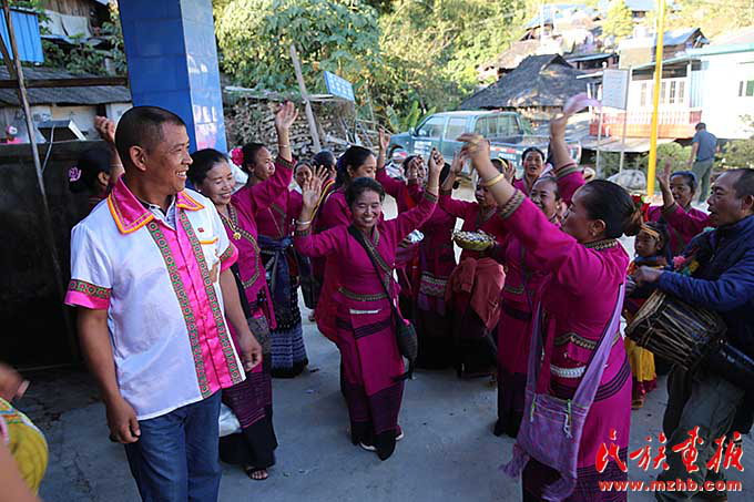 布朗族的節(jié)日,同村的哈尼族來賀喜