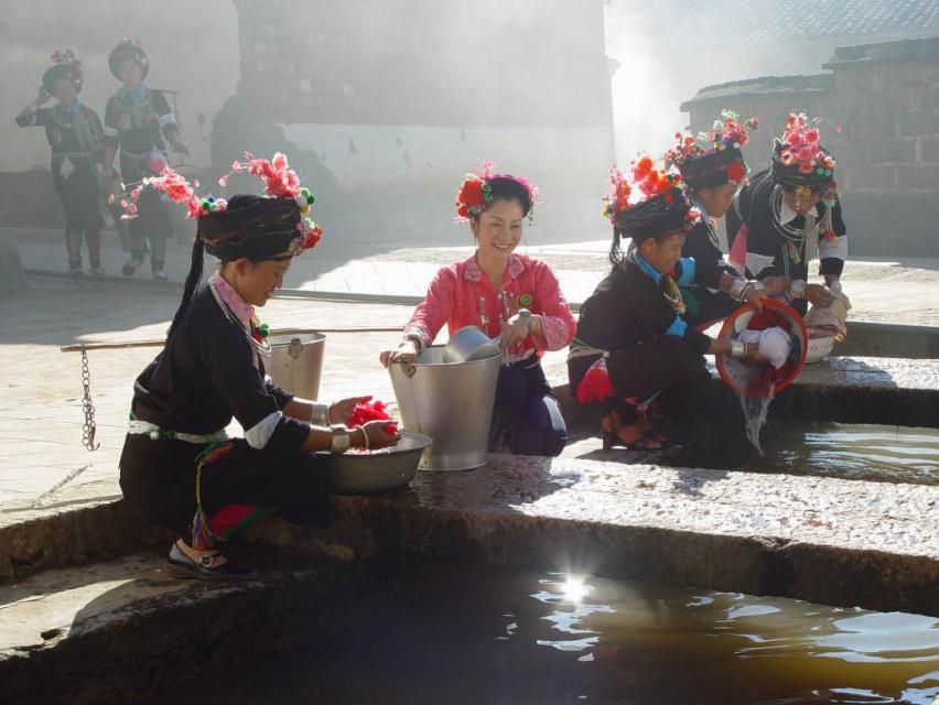 各地男子的服飾大同小異,均留短發(fā),未婚男子包一頭或兩頭鎖彩邊的白布或黑布包頭,已婚男子包藏青色布包頭。青年男子的包頭上往往插有鮮花或絨球飾。穿藍、白、黑等素色斜紋布對襟布扣袢上衣,黑色或藍色長褲,系黑色綁腿。未婚婦女留長發(fā)盤辮。穿白、藍色對襟銀扣上衣,黑、藍色長褲。系繡花飄帶黑布裙。