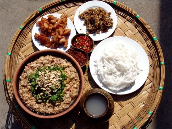 阿昌族還喜歡吃竹筍、竹蛆和蜂蟲、蜂蛹等。竹筍的吃法有鮮竹筍、干竹筍、腌酸筍等。鮮竹筍肉嫩細香,可當(dāng)蔬菜,也可與肉、豆類等炒著吃。竹蛆是一種生在嫩竹中的蟲蛹,色白個大,肉肥細嫩。有時一節(jié)竹子中有數(shù)百條,取出后用油炸脆,色澤金黃,撒點鹽而吃,是一種高蛋白鮮美食品。食用的蜂蟲、蜂蛹主要有黃腰蜂、夜時蜂、草蜂等土蜂類的蛹和幼蟲?;蛘ɑ虺?,香脆可口,營養(yǎng)豐富。