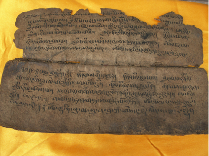 一般認(rèn)為普米族沒有本民族文字,但歷史上普米族曾使用過(guò)簡(jiǎn)單的圖畫文字,這是一種萌芽的原始刻畫文字,見于房屋壁畫、神龕、法器、房梁等地?,F(xiàn)學(xué)界說(shuō)的“韓規(guī)文”是以藏文字母為基礎(chǔ),用以記錄普米語(yǔ)的文字符號(hào)。韓規(guī)文主要用于抄寫宗教祭祀經(jīng)文,認(rèn)知度不高,一般只有普米族的巫師“韓規(guī)”才能掌握使用(圖為韓規(guī)文經(jīng)書殘片,蒙哥提圖)。普米族現(xiàn)今有一套拼音文字,該套拼音文字以寧蒗彝族自治縣新營(yíng)盤鄉(xiāng)牛窩子村的普米語(yǔ)為基礎(chǔ)音,在寧蒗普米傳統(tǒng)文化保護(hù)協(xié)會(huì)及香港大學(xué)丁思志教授的努力下,經(jīng)修訂的拼音文字最終面世,并且有了普米語(yǔ)教材。普米族拼音文字設(shè)計(jì)的構(gòu)想最早是在1995年由香港大學(xué)大學(xué)丁思志教授提出,同年,普米語(yǔ)聲母表首稿完成。該方案歷經(jīng)修改,最終的方案共收錄42個(gè)聲母,能夠滿足各地普米方言的使用需求。近年,丁思志教授又創(chuàng)制了一套有別于拼音文字的新創(chuàng)文字。新創(chuàng)文字是一種表意文字,該套文字以牛窩子普米語(yǔ)為基礎(chǔ)音,以漢字表意,輔之以自創(chuàng)的虛詞而成,從一定程度上超越了普米語(yǔ)言空間限制,解決了不同普米方言區(qū)因?yàn)榭谝舨町惗纬傻慕涣髡系K。