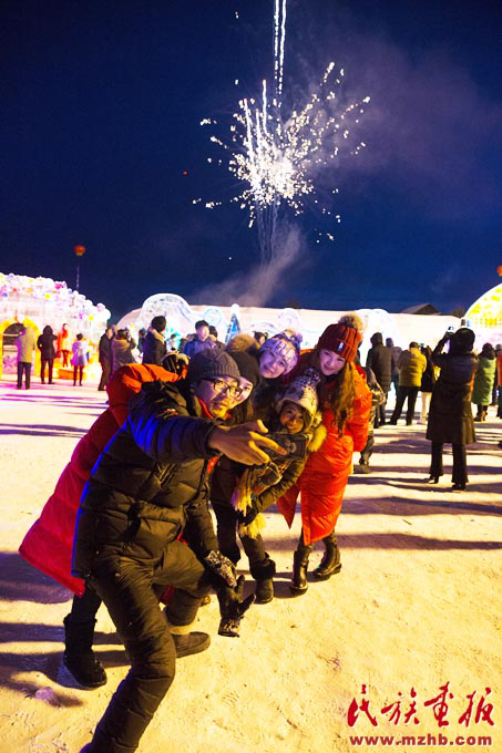 南方的游客第一次看到那么美的雪、那么厚的冰,激動(dòng)地想咬一口(武倩 攝影)