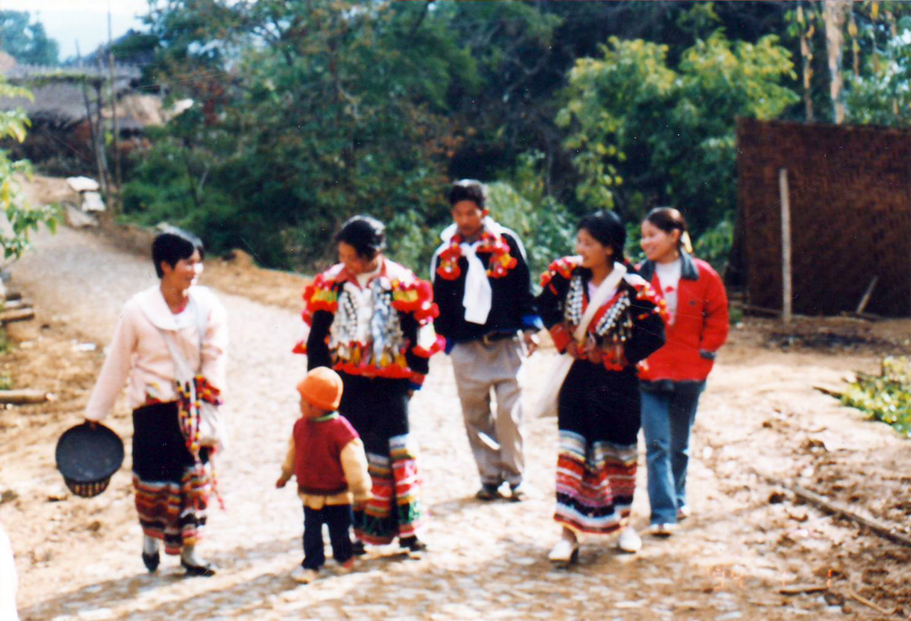 德昂族青年男女結(jié)婚前,都要先舉行認(rèn)親儀式。屆時(shí),男方的親戚如舅父、叔伯等陪同男青年到女方家,用帶去的酒肉糖茶等熱情地宴請(qǐng)女方家人,并分別贈(zèng)送禮品給女方家庭成員。認(rèn)親過后,女方就請(qǐng)卜卦人選定吉利的日子作為婚期,然后再通知男方家。男方要將彩禮于結(jié)婚前送達(dá)女方家(圖為德昂族女青年,1994)。