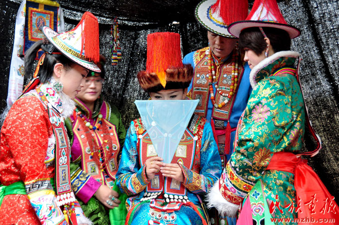 包辦婚姻與漢族相似,正式婚禮過程中有提親、訂婚、戴頭面、送親、打尖、踏房、射箭、堯達(dá)曲格爾等一系列古...