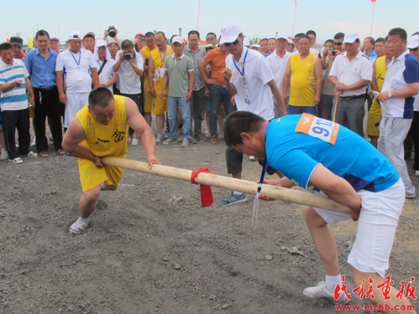 頂杠是赫哲族傳統(tǒng)體育項(xiàng)目,節(jié)日活動期間舉行了頂杠比賽