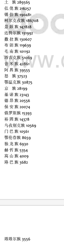 我國(guó)55個(gè)少數(shù)民族中,有22個(gè)少數(shù)民族人口在 10萬(wàn)以下,他們被統(tǒng)稱為人口較少民族,總?cè)丝?3萬(wàn)。這22個(gè)人口較少民族分別是:毛南族、撒拉族、布朗族、塔吉克族、阿昌族、普米族、鄂溫克族、怒族、京族、基諾族、德昂族、保安族、俄羅斯族、裕固族、烏孜別克族、門(mén)巴族、鄂倫春族、獨(dú)龍族、塔塔爾族、赫哲族、高山族、珞巴族。他們主要分布于內(nèi)蒙古、黑龍江、福建、廣西、貴州、云南、西藏、甘肅、青海、新疆10個(gè)省(區(qū))。