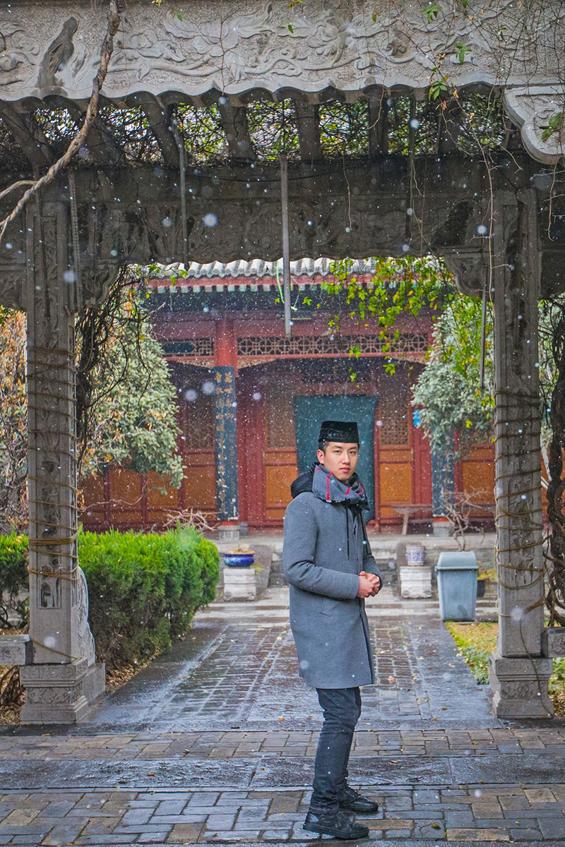 走到古色古香、被樹木覆蓋著的后亭時(shí),烏樂勇告訴我們,這個(gè)后亭采用的是無梁八卦懸頂結(jié)構(gòu),這在我國清真寺建筑中非常罕見,是珍貴的文化遺產(chǎn)。看得出,他對(duì)自己將來當(dāng)這里的阿訇很是自豪。